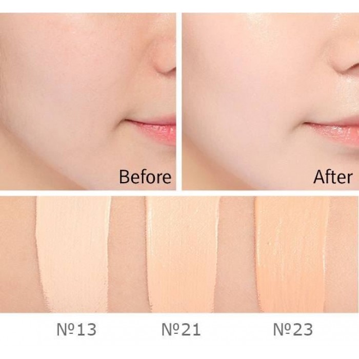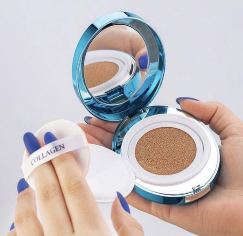 Collagen Aqua Air Cushion SPF50+ rada vienmērīgu pārklājumu, kas maskē ādas nepilnības, izlīdzina ādas toni un tekstūru, padara ādu gludu un piešķir tai dabisku mirdzumu.