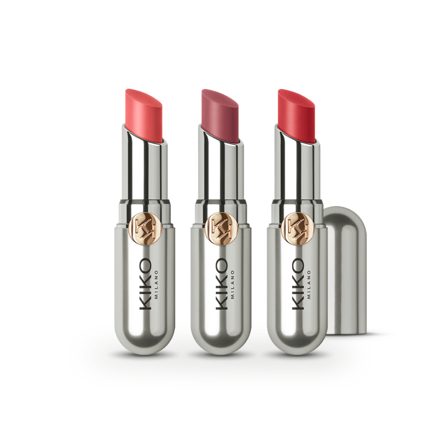 Lūpu kosmētikas komplekts, kas sastāv no 3 krāsainiem lūpu balzāmiem ar mitrinošām īpašībām, elegantā iepakojumā.