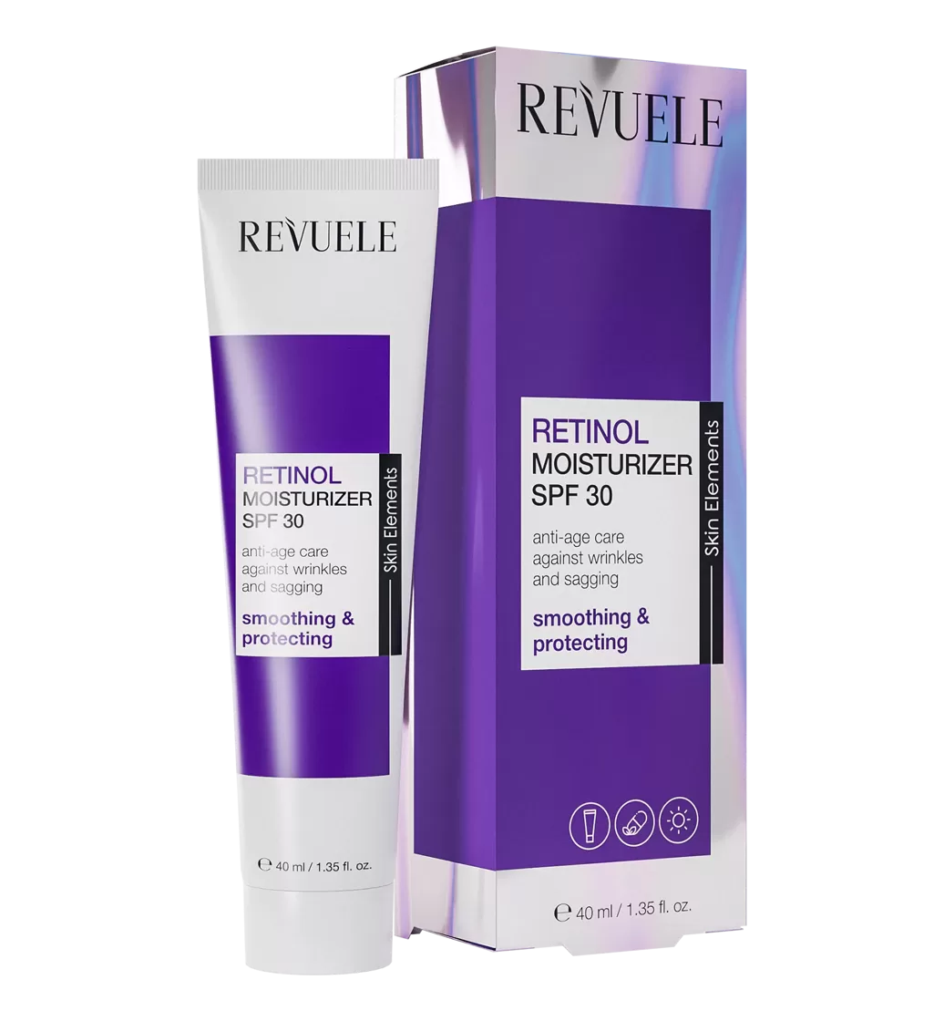 REVUELE RETINOL MOISTURIZER SPF 30 ir viegls, bet ļoti spēcīgs pretnovecošanās sejas krēms, kas palīdz atjaunot mitruma un elastības zudumu un aizsargāt ādu visas dienas garumā.