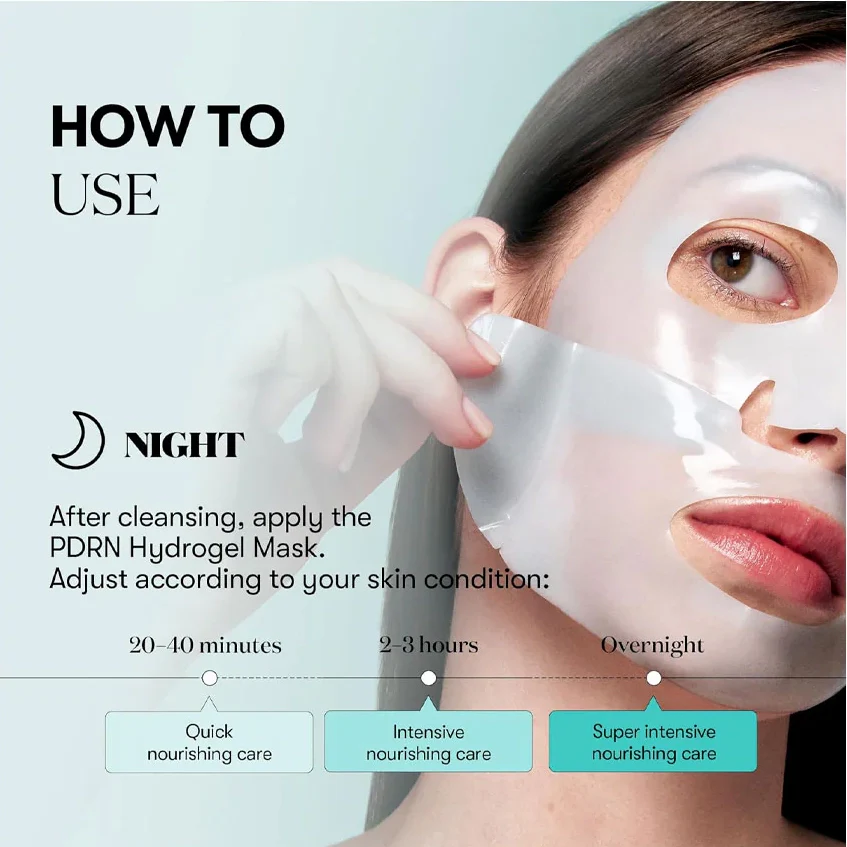 Uz tīras, tonizētas sejas ādas uzlieciet masku un labi piespiediet, lai tā pieguļ. Maskas turēšanas laiku izvēlaties pēc vajadzības: 20-40 min ātrai ādas pabarošanai; 2-3 h – intensīvākai iedarbībai. Varat to atstāt arī uz visu nakti.